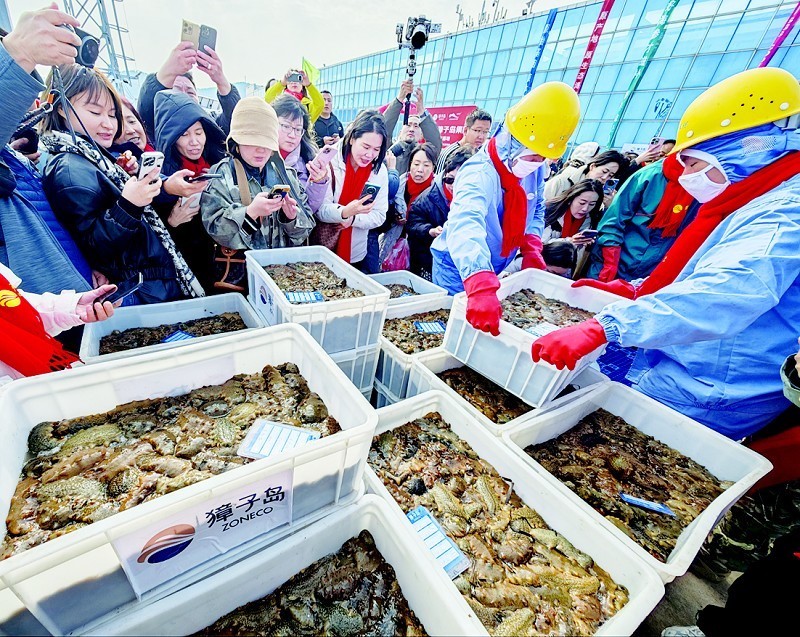 初冬时节,碧海欢歌。11月7日,正值“立冬”节气,在北纬39°黄金海域——辽宁大连长山群岛最南端的獐子岛镇,“见证·野生——2025獐子岛原产地野生海参冬捕节”正式启幕,现场锣鼓喧天,海腾人欢,洋溢着丰收的喜悦。大连獐子岛海洋发展集团总经理张昱,长海县委常委、副县长、獐子岛镇党委书记张盛族,大连市文化和旅游局副局长刘磊,中绿华夏有机产品认证中心主任栾治华,大连市现代农业生产发展服务中心副主任赵宇,通标标准技术服务有限公司大连分公司东北区农产食品部经理刘守峰,大连市海洋渔业协会会长李克诗,以及獐子岛集团总裁路珂等领导出席活动。来自全国各地的嘉宾、经销商伙伴、主流媒体代表及网红主播等300余人共同见证这一海洋盛事的开启。